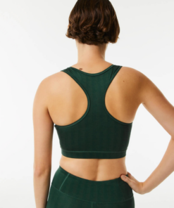 Thiết kế: Dáng bra thể thao nâng đỡ tốt với bản bo dưới ngực chắc chắn; lưng mở thoáng tối ưu chuyển động; họa tiết xanh lá hiện đại mang đậm phong cách SPORT của Lacoste.