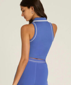 Một chiếc áo polo tennis có tính năng kỹ thuật cao, với thiết kế dáng hơi ngắn.