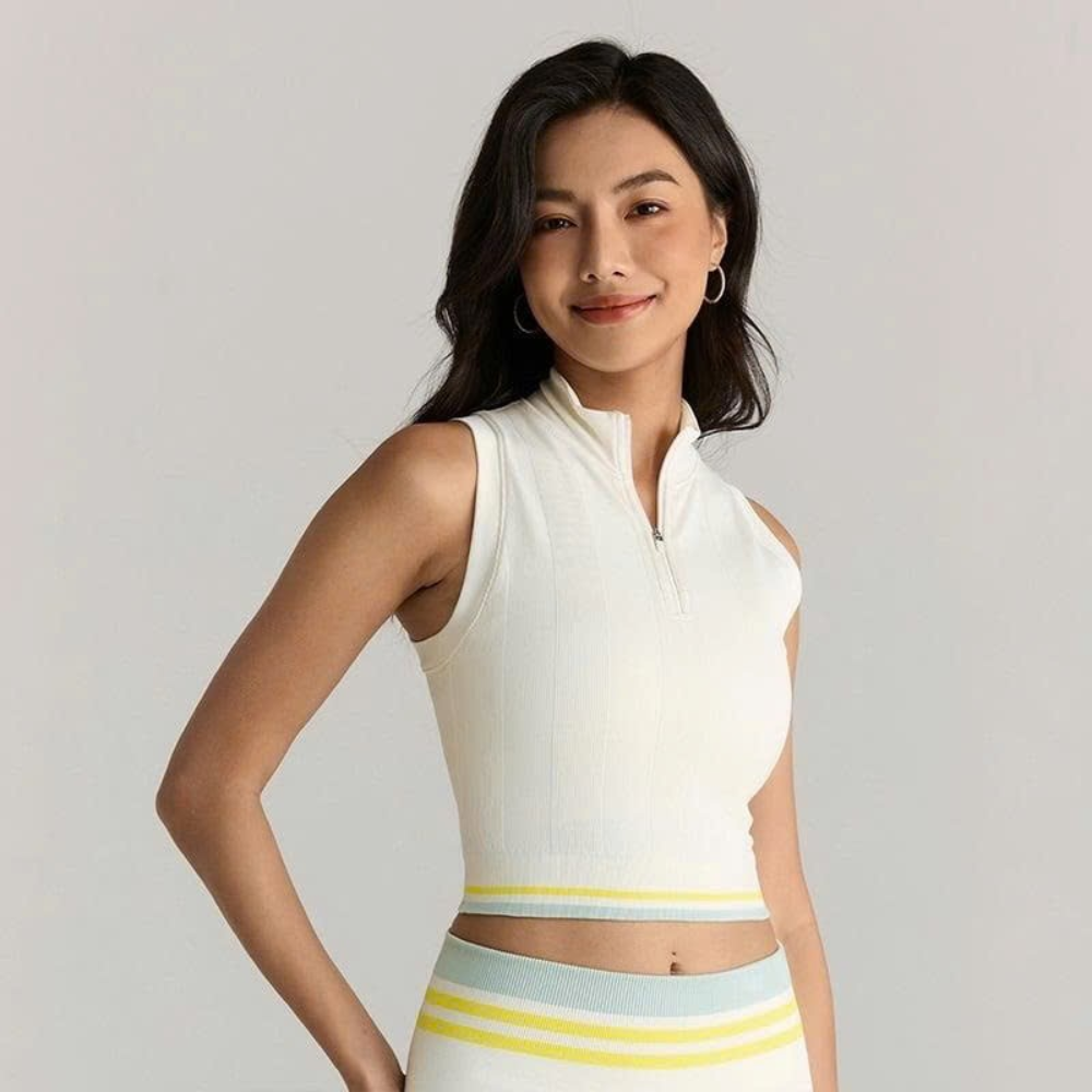 - Thiết kế All-in-One tiện lợi: Áo có lớp lót bra tích hợp, mang lại sự hỗ trợ tối ưu mà không cần mặc thêm áo lót thể thao bên trong.