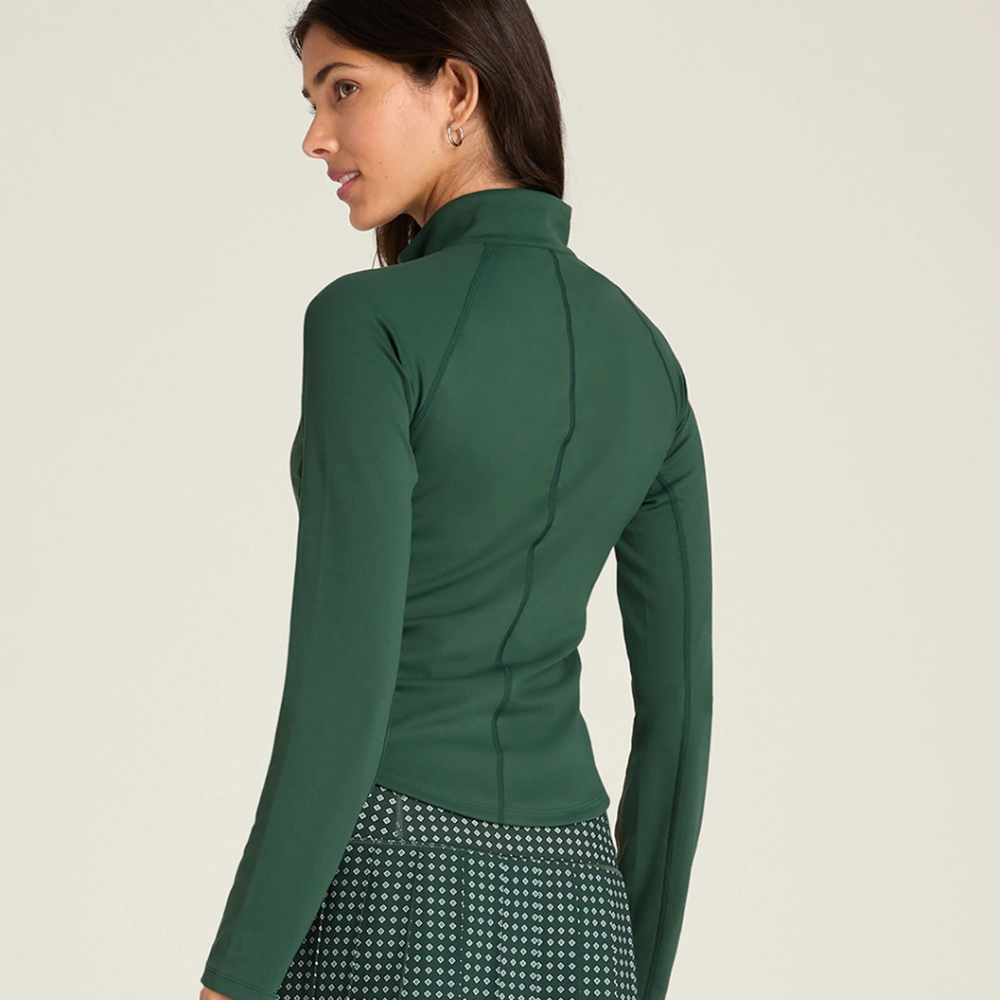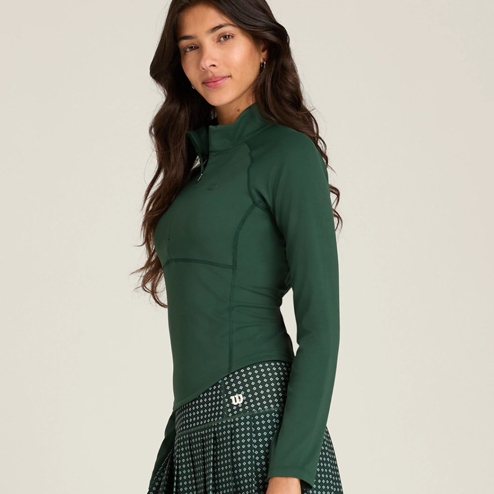 Một chiếc áo cổ khóa kéo mang lại cảm giác nhẹ tênh với lớp hoàn thiện chống tia UV lý tưởng cho những ngày dài trên sân đấu.