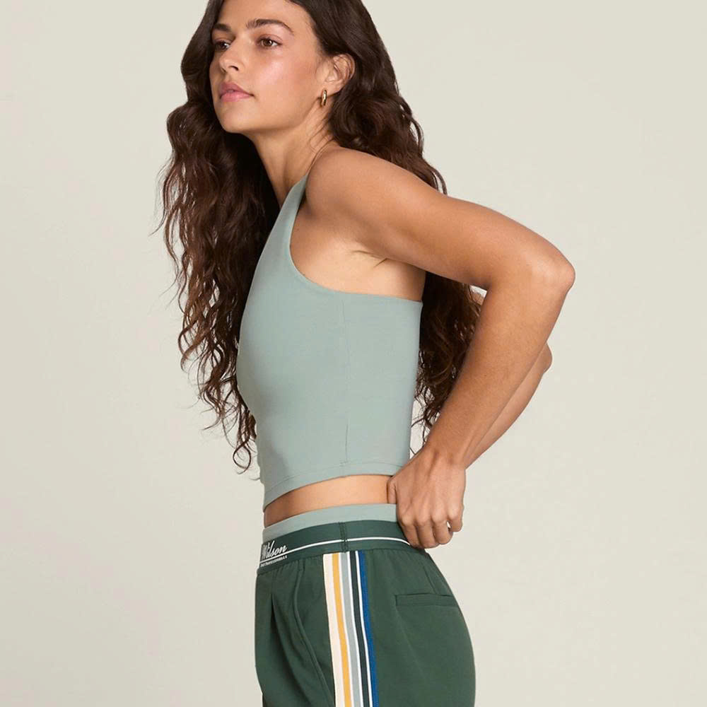 Áo được trang bị bra lót liền bên trong (built-in shelf bra) với mút đệm tháo rời cùng lớp lưới power mesh (power mesh lining) mang lại cảm giác nén (compressive), ôm sát và cố định. Chất liệu vải mềm mại, được chải kỹ, có độ dài lý tưởng ngang eo, giúp nó kết hợp hoàn hảo với tất cả các loại váy và quần shorts cạp cao của bạn.