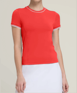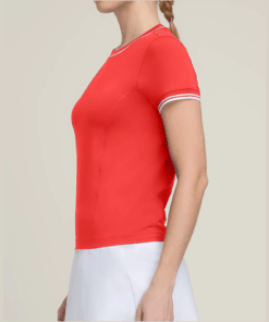 Phần cổ tròn gân phối viền màu tương phản tạo điểm nhấn thể thao nổi bật, trong khi các đường may princess ở thân trước và sau giúp tôn dáng và tăng độ vừa vặn. Bo tay áo gân phối sọc thể thao thể hiện phong cách năng động và tràn đầy năng lượng. Chất liệu 100% polyester cao cấp kết hợp công nghệ chống mùi và thấm hút mồ hôi nhanh giúp người mặc luôn khô thoáng, tự tin trong suốt buổi tập hay thi đấu.