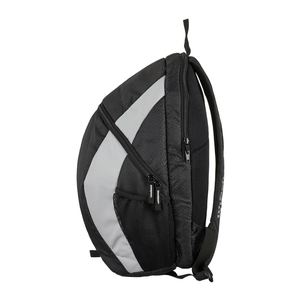 Hai bên balo là túi lưới co giãn – lý tưởng để đựng chai nước hoặc hộp bóng tennis. Dây đeo balo có đệm và có thể điều chỉnh độ dài, giúp mang theo thoải mái trong suốt hành trình. Ngoài ra, quai xách phía trên hỗ trợ cầm tay linh hoạt.