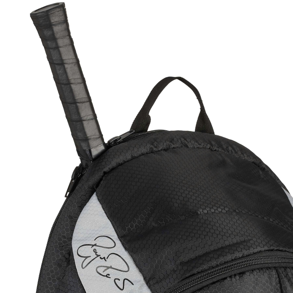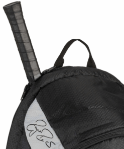 Balo được thiết kế với hai tông màu đen/trắng tinh tế cùng chữ ký Roger Federer in chìm ở mặt trước, tạo điểm nhấn nổi bật. Ngăn sau có đệm, có thể chứa tối đa 2 cây vợt, bảo vệ dụng cụ khỏi va đập. Ngăn chính rộng rãi giúp bạn đựng đầy đủ trang phục, phụ kiện hoặc giày dép khi di chuyển. Bên trong có thêm các ngăn phụ tổ chức tiện lợi cho vật dụng cá nhân.