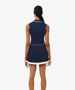 Thiết kế: Form đầm thể thao dáng regular fit, cổ polo đặc trưng Lacoste kết hợp phong cách Heritage cổ điển, tạo vẻ ngoài thanh lịch và chuyên nghiệp trên sân.