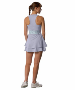 Thiết kế: Form đầm ôm nhẹ phần thân trên và xòe ở chân váy, tạo sự tự do tối đa cho các pha di chuyển, xoay người và đánh bóng.