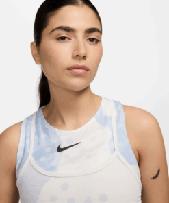 Thiết kế: Kiểu dáng đầm tennis hiện đại với phần thân ôm nhẹ, tôn dáng nhưng không gây gò bó. Họa tiết in tinh tế tạo điểm nhấn thời trang. Cổ và phần vai được cắt may tối ưu cho tốc độ và phạm vi chuyển động khi đánh bóng.
