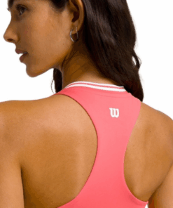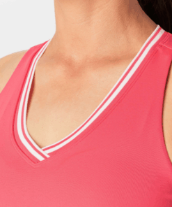 - Thiết kế cổ chữ V (V-neckline) và lưng Racerback khoét sâu (scooped-out racerback).