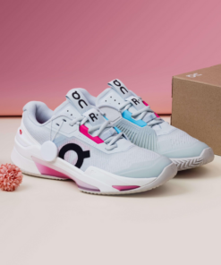 Thiết kế: Form giày gọn, khí động học; phần mũi và thân giày được gia cố để tăng độ bền trên sân; màu hồng kết hợp chi tiết tối giản mang phong cách hiện đại của dòng THE ROGER.