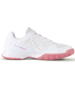 Hoàn thiện & chi tiết nổi bật: Logo Wilson sắc nét, upper trắng mauve hiện đại, chất liệu bền dễ vệ sinh – lựa chọn đáng tin cậy cho các tay vợt nhí cần sự êm ái và hỗ trợ tốt.