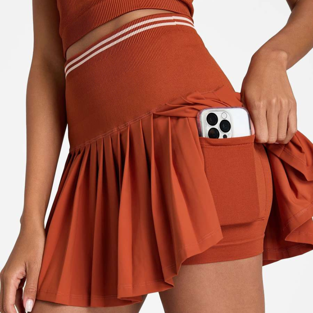 Quần short tích hợp: Quần short liền mạch bên trong mang lại sự kín đáo và thoải mái, có tích hợp túi đựng tiện lợi.