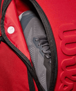 Các khóa kéo khóa lại với nhau để giữ cho đồ trong túi luôn khô ráo và chống tràn. Túi tennis được may bằng vải polyester.