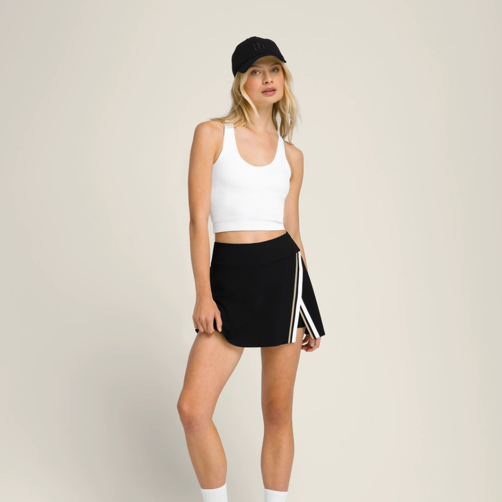 Thiết kế: Dáng váy thể thao đơn giản nhưng sắc nét, có quần lót tích hợp bên trong giúp tự tin khi di chuyển tốc độ cao. Đường cắt mang cảm giác năng động, hỗ trợ độ mở bước khi chạy.